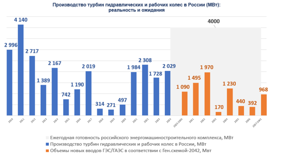 По данным Росстата, за последние 15 лет в стране произведено турбин гидравлических в объеме 26,3 ГВт.